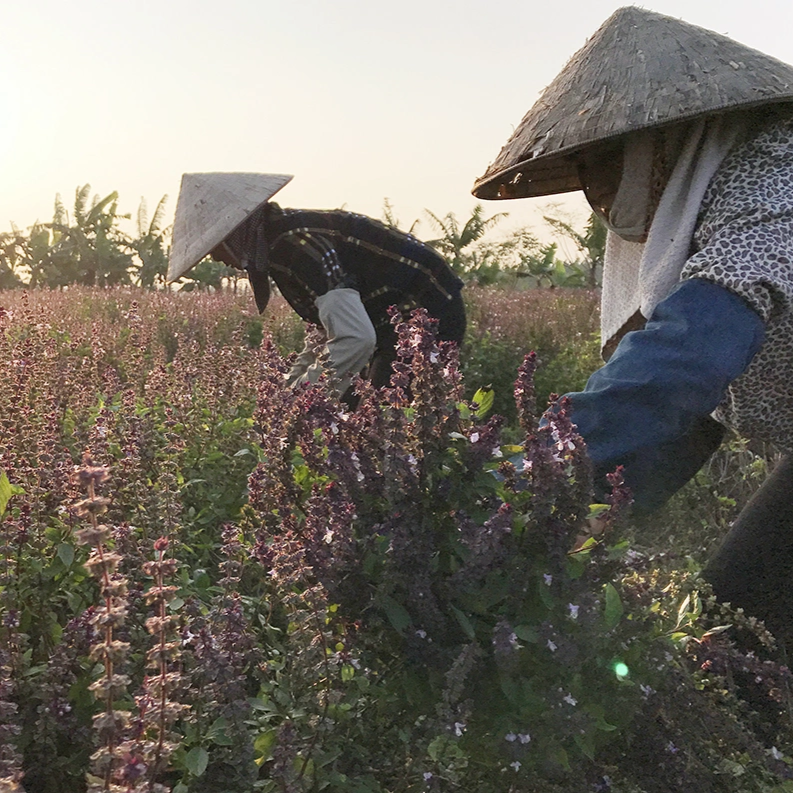 Beyond its scent, basil is renowned for its acne-fighting, anti-inflammatory, and antibacterial properties. It is commonly added to cosmetics and massage oils as an antioxidant, protecting the skin while also calming and relieving stress. Unlike Western Basil oils, Vietnamese Basil presents a sweeter, gentler herbal note.
